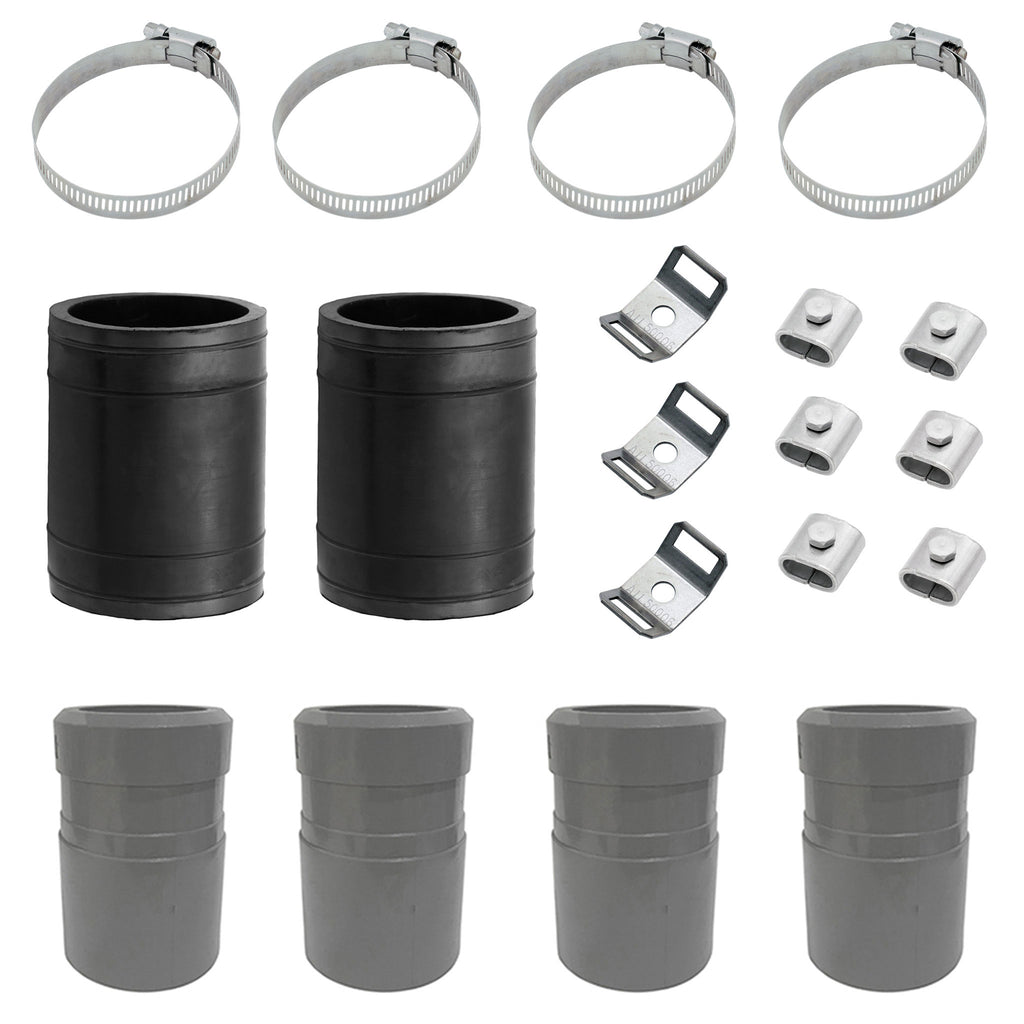 - Includes the necessary parts to bypass mounting surface obstructions larger than 7" such as roof vents, skylights and exhaust fans. Allows connection of PVC pipe between the panels to provide proper clearance of the obstruction.