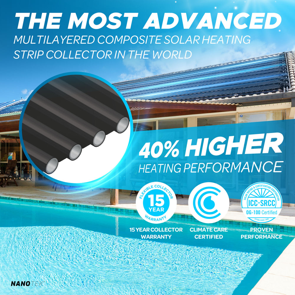 NanoTek NexGen DIY Solar Pool Heater Kit - Advanced Nano Graphitic Multilayered Composite - 40% More Heating - Requires Significantly Less Roof Space